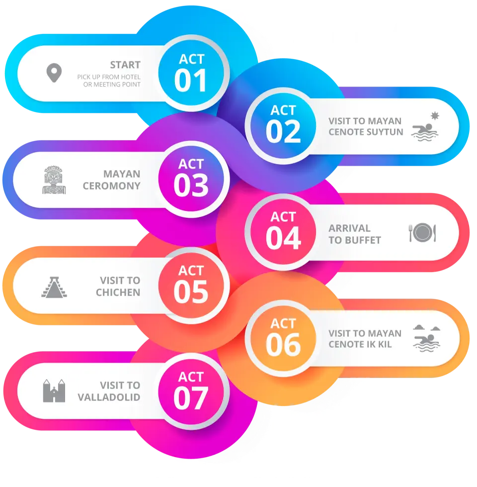 Travel comfortably aboard our luxury buses, equipped with air conditioning, restrooms, and certified guides who will share the secrets of Chichen Itzá.